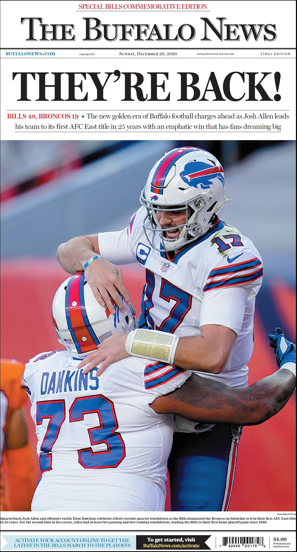 Mark the new golden era of Buffalo football with a limited-edition collectible poster that reproduces the historic Sunday front page of The Buffalo News.