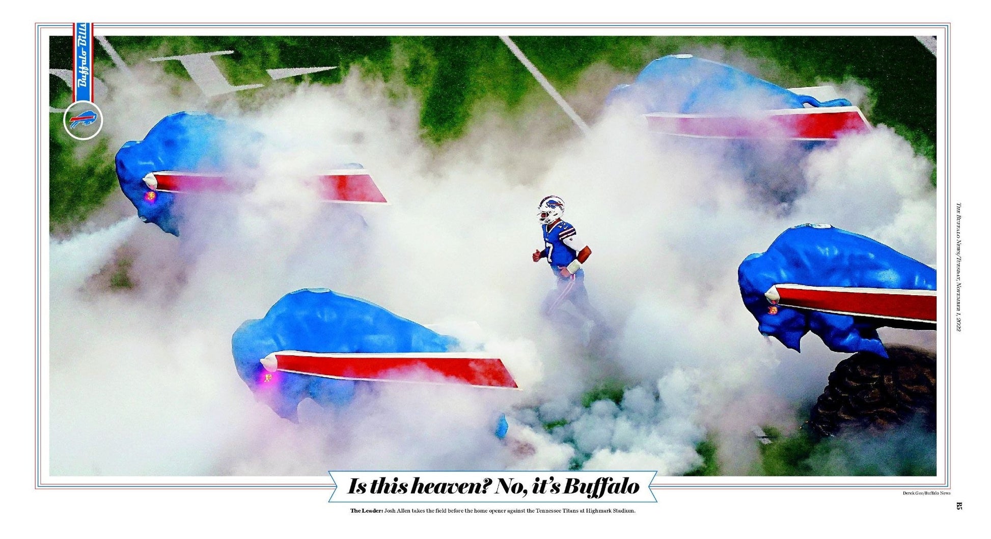 The Leader: Josh Allen takes the field before the 2022 season home opener against the Tennessee Titans at Highmark Stadium.
