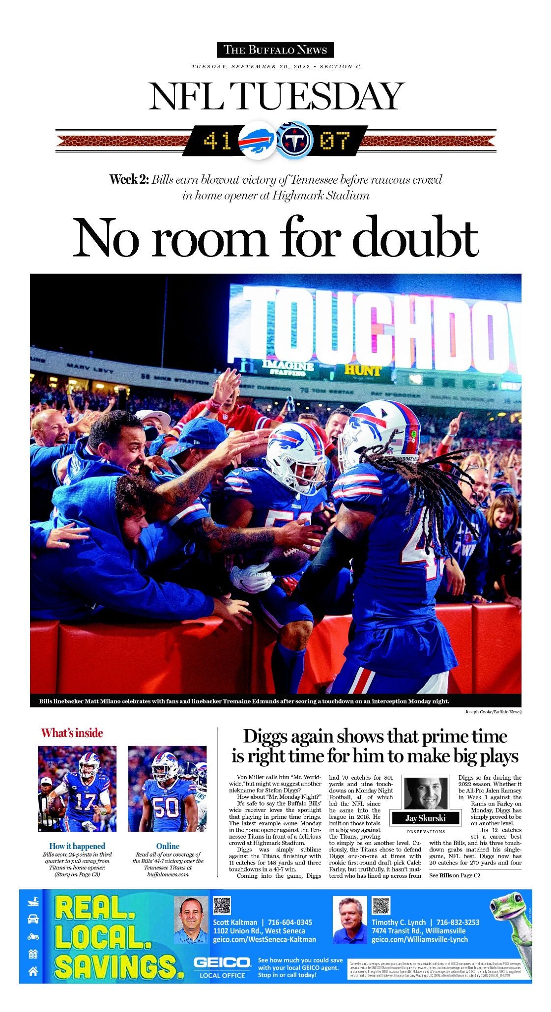 "No room for doubt" Buffalo News Sports Section Poster, September 20, 2022
